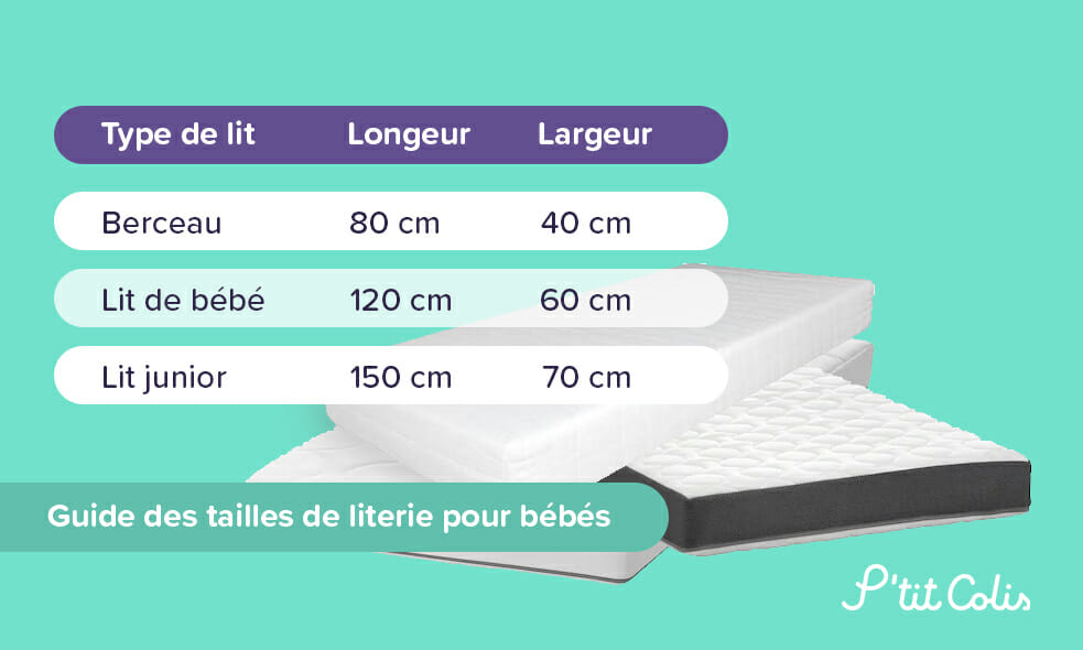 La literie est également importante, bien sûr, car votre bébé sera (espérons-le) souvent au pays des rêves. Vous ne savez pas quelle literie acheter ? Le tableau des tailles ci-dessous vous aidera dans votre démarche.